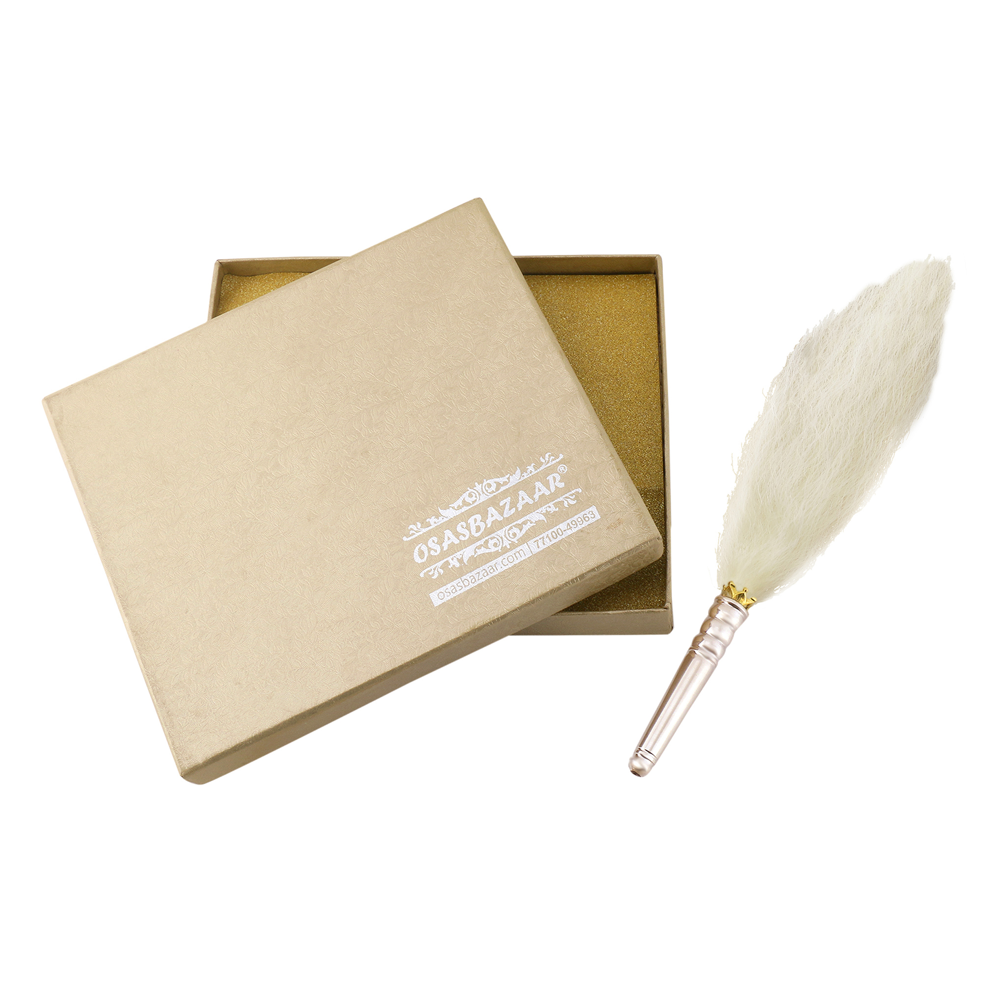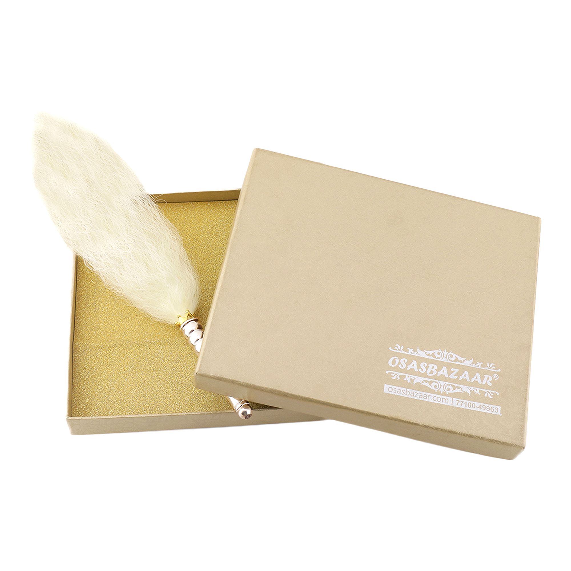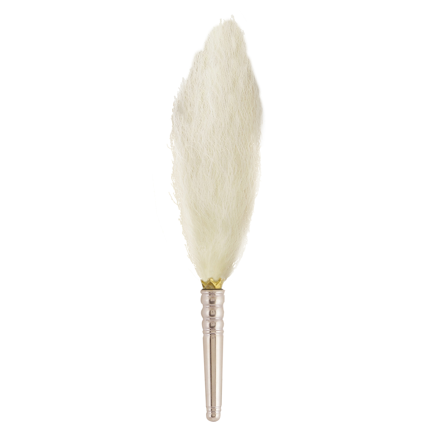 Beautiful artificial white hairs are held together on a base covered with pure silver body of glossy finish. It looks simple, elegant and divine.