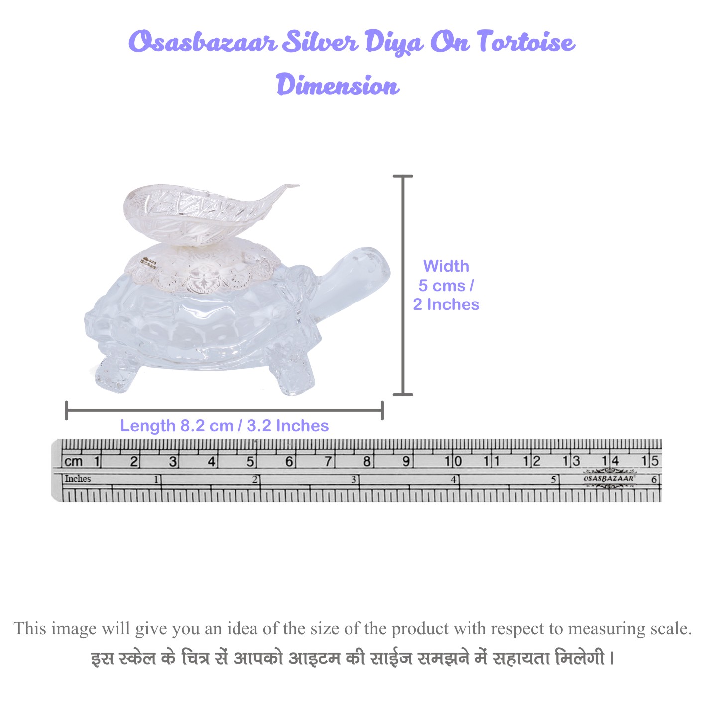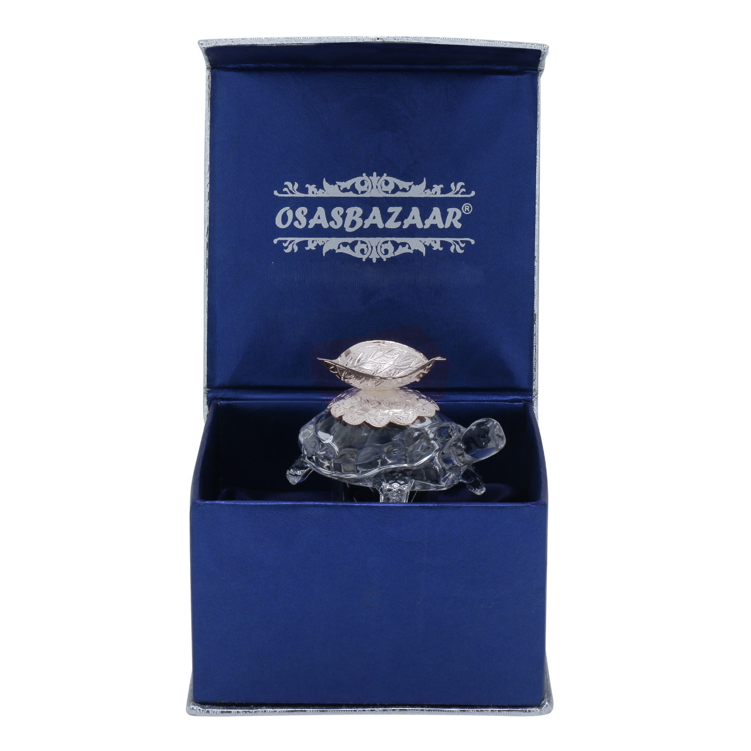 Osasbazaar Sterling Silver Diya on Crystal Tortoise Statue – Purity Certified: