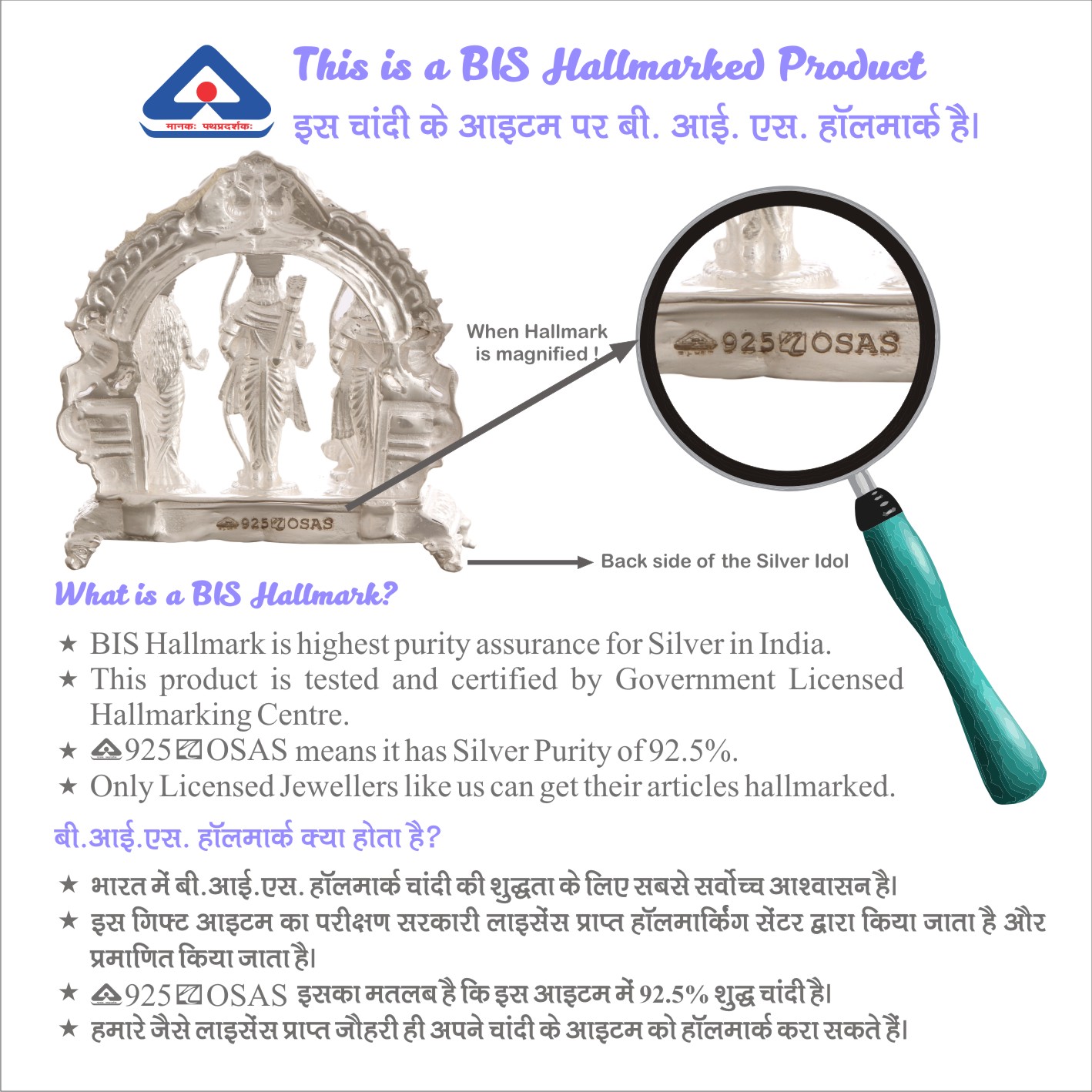 Osasbazaar® Sterling Silver Ram Darbar Idol Statue – BIS Hallmarked: