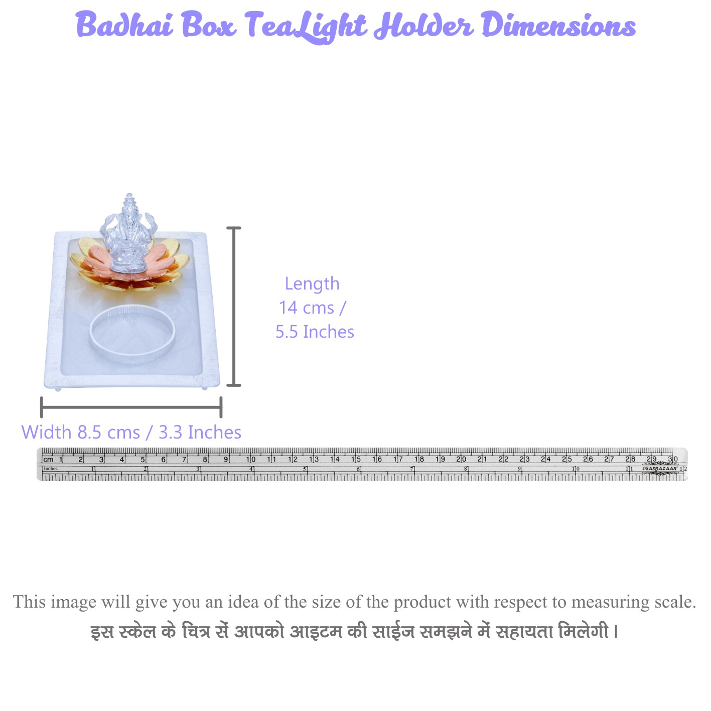 Badhai Box by Osasbazaar Tea Light Holder with Ganesh Statue on a Flower – Gold, Rose Gold and Silver Plated: